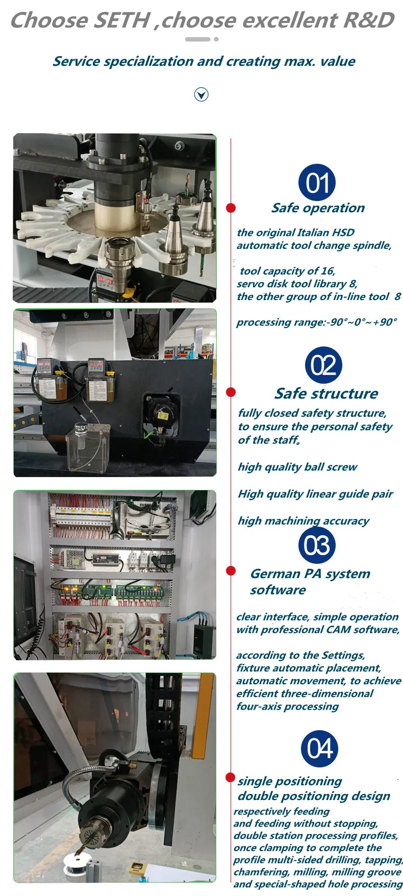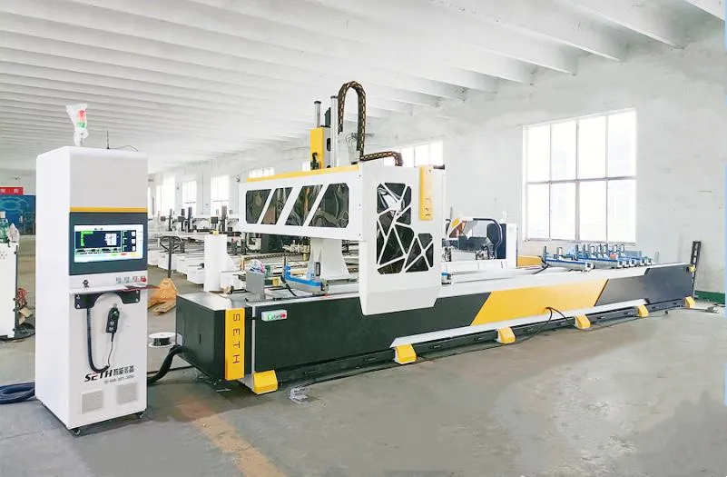 This advanced machining center is designed for economical and efficient machining of aluminium and thin-walled steel profiles. All operations, such as routing, drilling, tapping, and sawing, are performed while the profile bar is stationary to protect the surfaces.