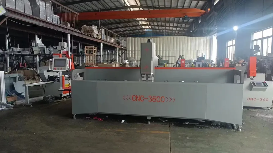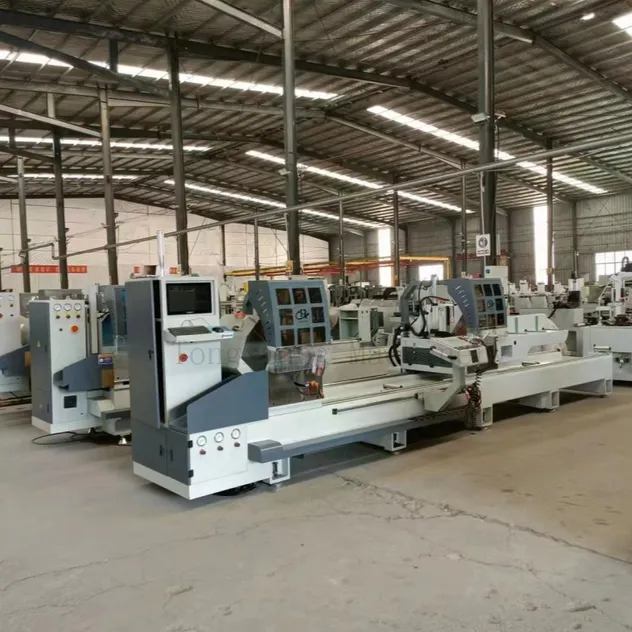 This high-precision CNC double-head cutting saw is designed for aluminum profile doors and windows. It features advanced servo motor control and a golden cutting angle for superior finish and accuracy.